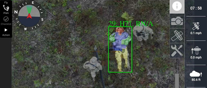 Originally, Quist's team collected data from short test flights in parks and public spaces near their lab, using simulated casualties and mannequins. While these experiments provided valuable initial data for validating the system's algorithms, they lacked the fidelity of an operational setting. An invitation from MED CDID to participate in the Project Convergence 4 capstone exercise presented an opportunity to pivot the project toward a more operator-centered design. First, the team needed to participate in a risk-reduction event – Northern Strike 2023, an Army National Guard exercise in Michigan. The team developed a preliminary user interface to display vital sign data on the UAS controller, which required them to identify the information that would be most useful to medics and determine how best to present and deliver it. For PCC4, the team successfully developed a software plugin that allowed the drone data to be integrated into the Android Team Awareness Kit, a smartphone-based targeting, navigational, and data sharing system widely used by the DOD.