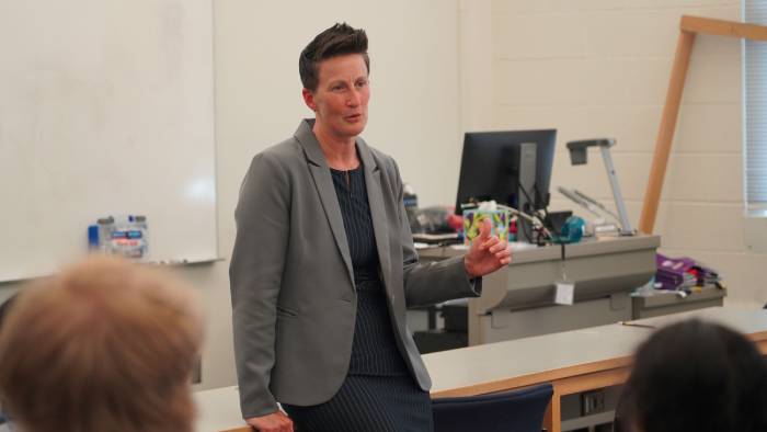 In her discussion, Quinn emphasized that students could follow many paths to a career in science, citing her own eclectic journey as an example. After working as a physical therapist and emergency medical technician, she joined the U.S. Army so that she could pursue a position as a research scientist at the U.S. Army Research Institute of Environmental Medicine, part of DHA R&D-MRDC. There, she led a team conducting research into human performance in extreme environments. As director of USARIEM's GEMS program, she was famous for greeting the students with high-fives every morning as they arrived at the front gate of the Natick Soldier Systems Center.